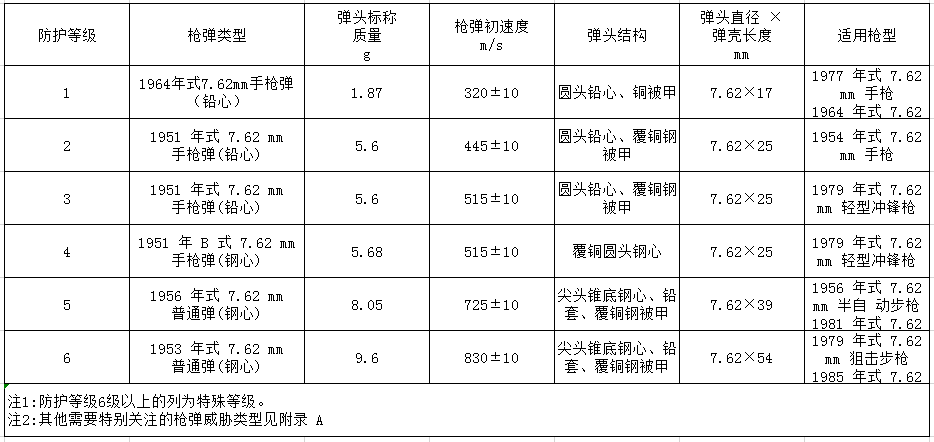 B.1.2槍彈:按表1規定的防彈盾牌防護等級, 選用相應的試驗用標準槍彈。