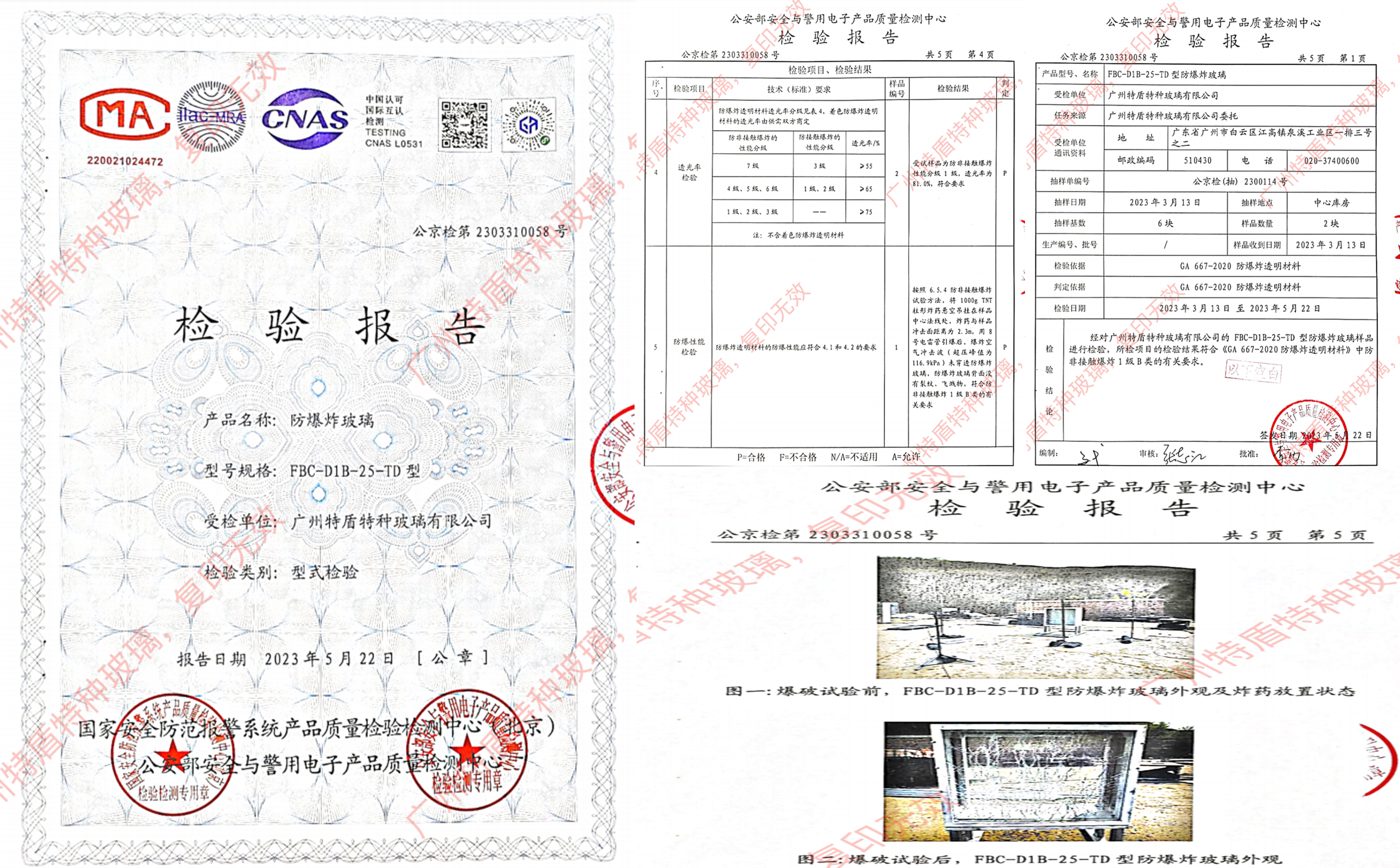 以下是關(guān)于FBC-D1B-25-TD型防爆炸玻璃的檢驗(yàn)報(bào)告,通過國(guó)家安全防范報(bào)警系統(tǒng)產(chǎn)品質(zhì)量監(jiān)督檢驗(yàn)中心(北京)及公安部安全與警用電子產(chǎn)品質(zhì)量檢測(cè)中心二者檢測(cè)結(jié)構(gòu)檢驗(yàn)復(fù)合標(biāo)準(zhǔn)的型號(hào)。
